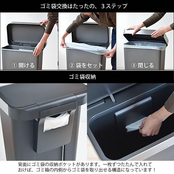 ゴミ箱 シンプルヒューマン simplehuman プラスチック レクタンギュラー ステップカン 横型 45リットル 45L ペダル キッチン スリム ごみ箱 シンプルヒューマン 45L 5cm